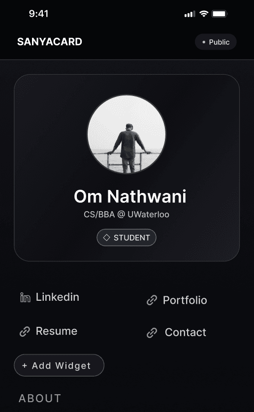 Share your profile instantly — no friction. Built to feel minimal and premium.